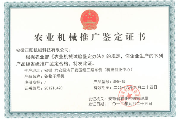農(nóng)業(yè)機(jī)械推廣鑒定證書