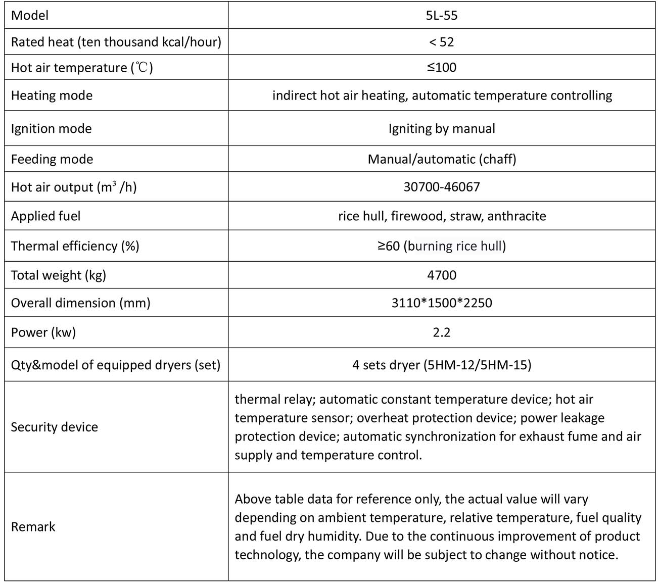 2) Indirect hot air drying, clean hot air has no pollution to grain